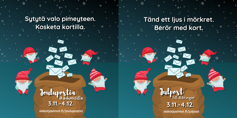 Seuraa kampanjaa somessa: #kosketakortilla #joulupostia #berörmedkort #julpost