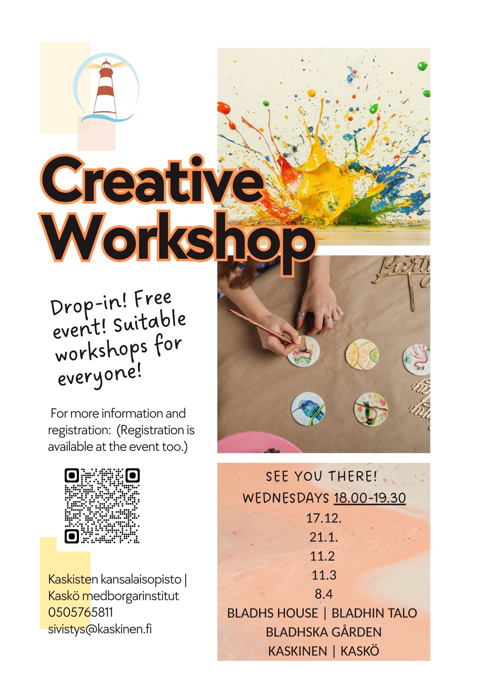 Vill du ha tips och uppdateringar om kommande kurser och evenemang? Följ oss i sektionen Aktuellt på vår hemsida eller på Kaskö stads officiella Facebook-sida.